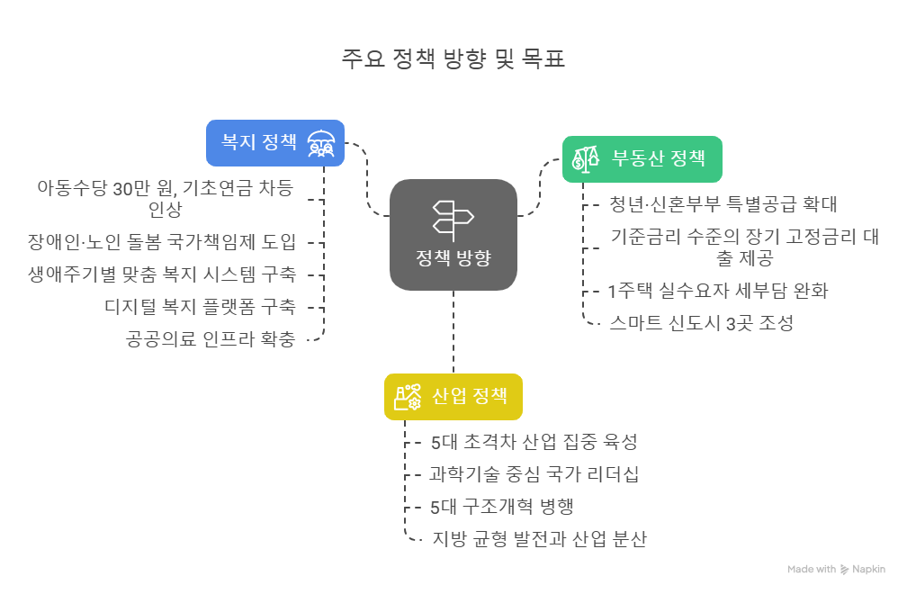 “진짜 대한민국”을 위한 이재명 공약 핵심 요약📌이재명 후보는 경제 불평등 해소와 민생 안정에 방점을 찍으며,국가 주도 투자와 포용적 복지 확대를 핵심으로 한 공약을 제시하고 있습니